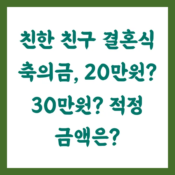 2025년, 친구 결혼식! 축의금 얼마나 내야 적절할까요? 고민되시죠?! 20만 원? 30만 원? 아니면 그 이상?! 물가도 오르고, 관계도 다르고… 정말 머리 아프네요!🤯 이 글에서는 친한 친구 결혼식 축의금의 적정 금액을 사회·경제적 관점, 최신 트렌드, 그리고 상황별 맞춤 가이드까지 꼼꼼하게 분석하여 속 시원히 알려드립니다! 축의금 고민, 이제 끝! 😉